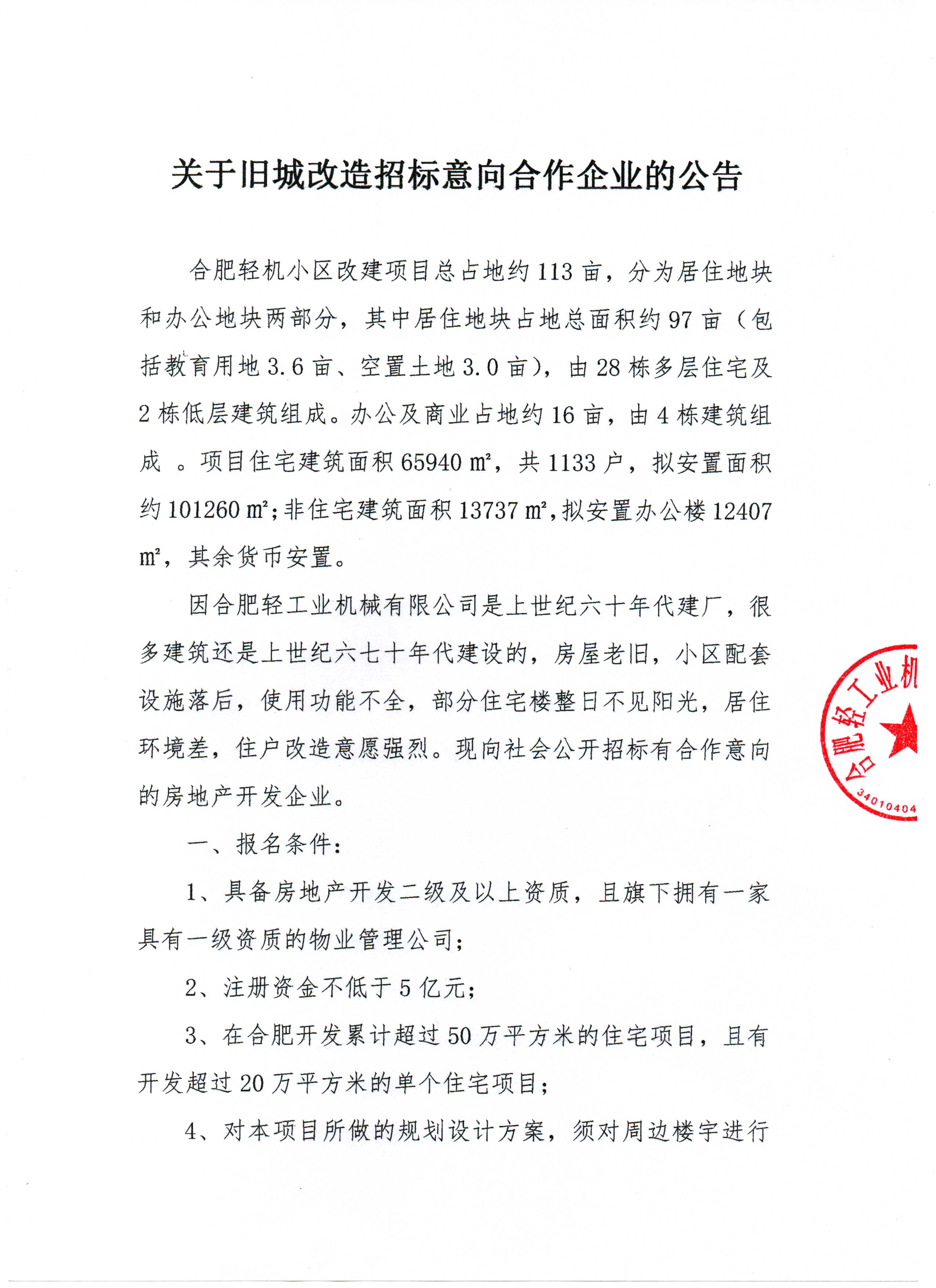Notice of Invitation for Cooperation with Potential Bidders for Urban Renovation Project