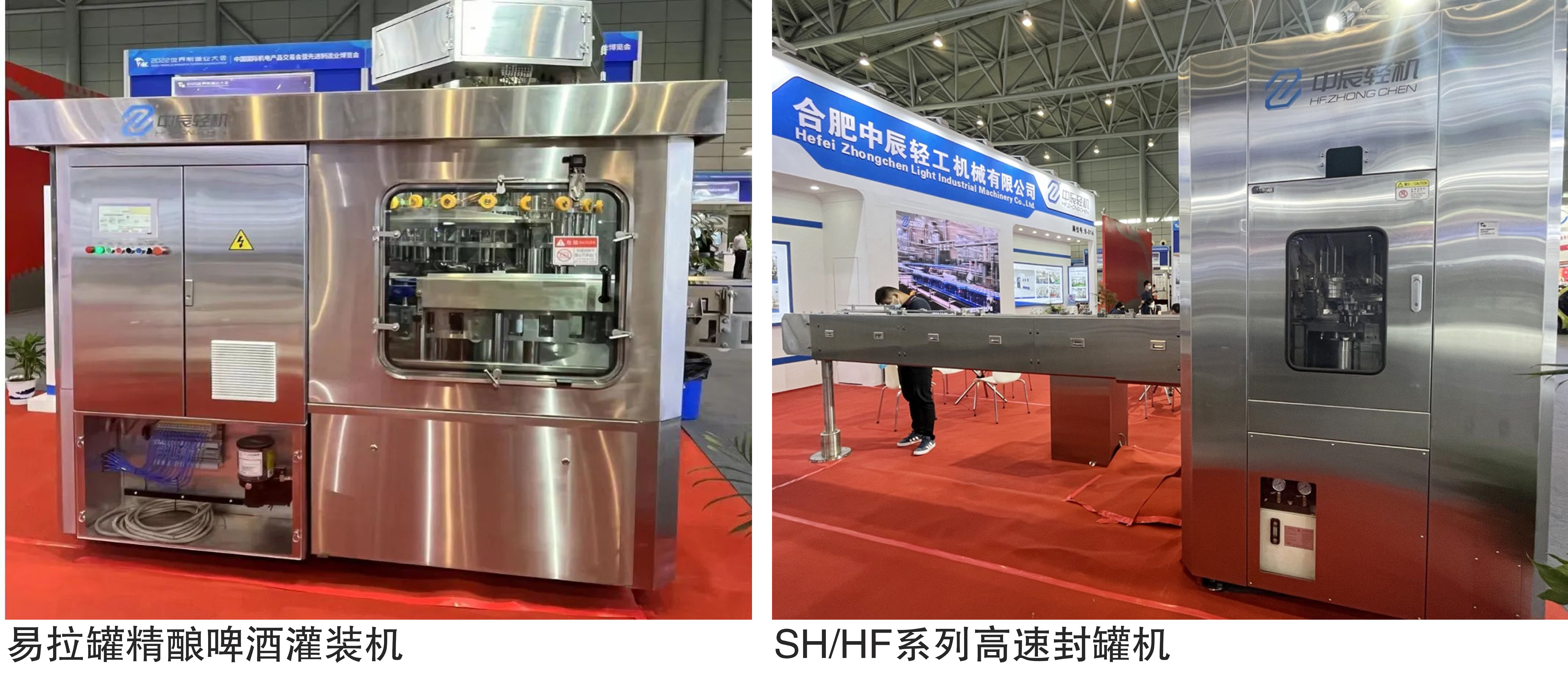 On September 20, the 2022 World Manufacturing Conference opened at the Binhu International Expo Center in Hefei with the theme of "Manufacturing the World, Creating a Better Future." The conference was jointly hosted by the Ministry of Industry and Information Technology, the Ministry of Science and Technology, the Ministry of Commerce, the State-owned Assets Supervision and Administration Commission of the State Council, and the Anhui Provincial Government. Zhongchen Light Industry was invited to participate with its heavyweight exhibits, showcasing a comprehensive solution for craft beer filling and packaging production lines and its representative product with "chokepoint" technology, the SH/HF series high-speed can seamer, at booth B-0
